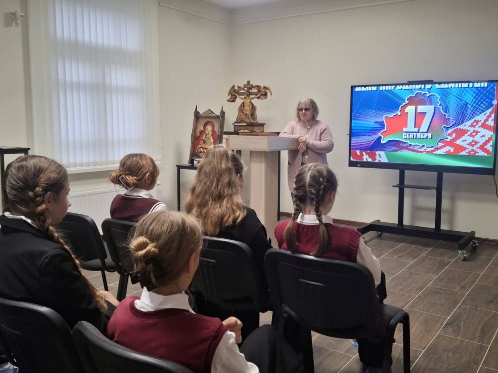 17 сентября в День народного единства учащиеся ГУО "Средняя школа №3 г.Климовичи", посетили лекционное занятие посвященное данному празднику, которое провела главный хранитель фондов Наталья Банышевская. В ходе занятия школьники познакомились с историческим прошлым праздника, отражающим важные этапы в истории Беларуси, примеры сплоченности и взаимопомощи друг другу, национального единства как основы мира, согласия и развития общества.