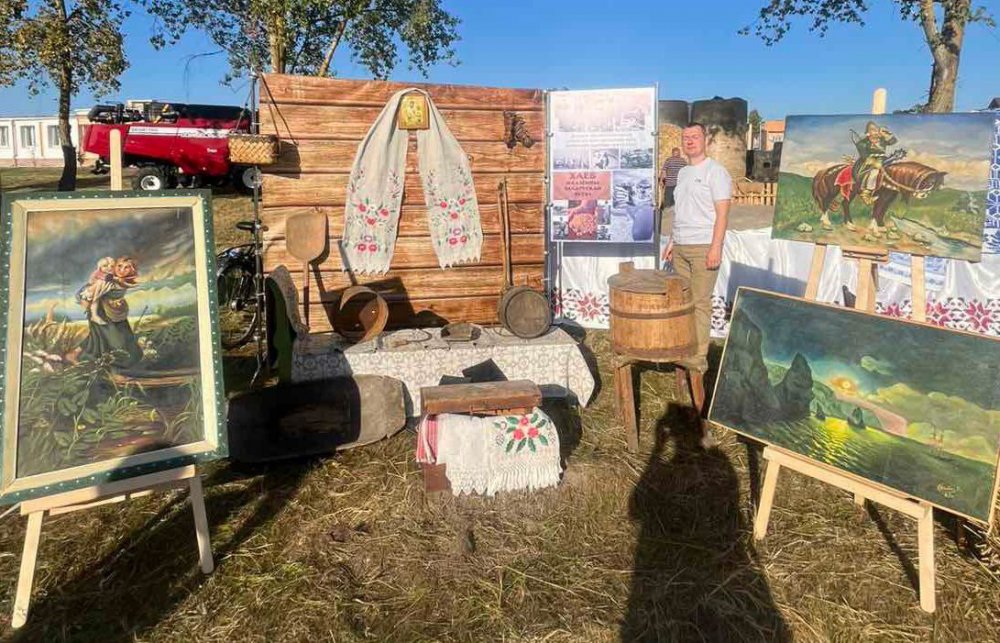 30.08.2025 в р.п. Речица на районном празднике "Дожинки-2025" филиал «Речицкий музей народной славы» УК "Столинский районный краеведческий музей" подготовил выставку из фондов музея. В экспозиции представлены предметы быта селянина.